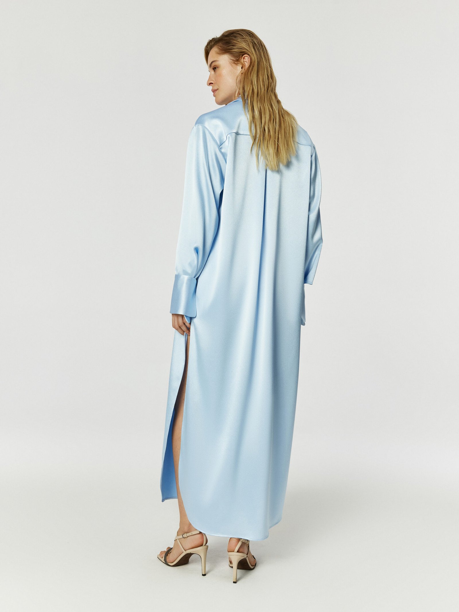 Накидка або довга сукня сорочка. Модель пряма, зі спущеним плечем, накладними кишенями на грудях, високими розрізами по бічних швах і закругленою формою по низу. У комплекті з поясом.